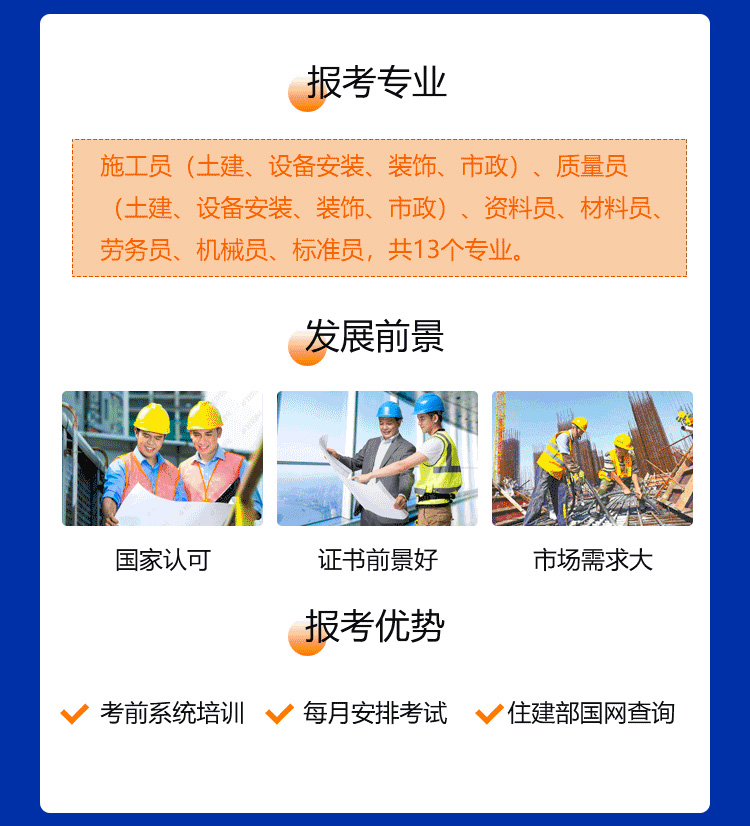 (2023年政策)建筑八大员报考时间和条件-统一报考须知给想考施工员证的学员开通了一个绿色通道,联网可查,上岗必备网上即可报名考证,随时网上提交报名资料,通用,面向招生,费用低,